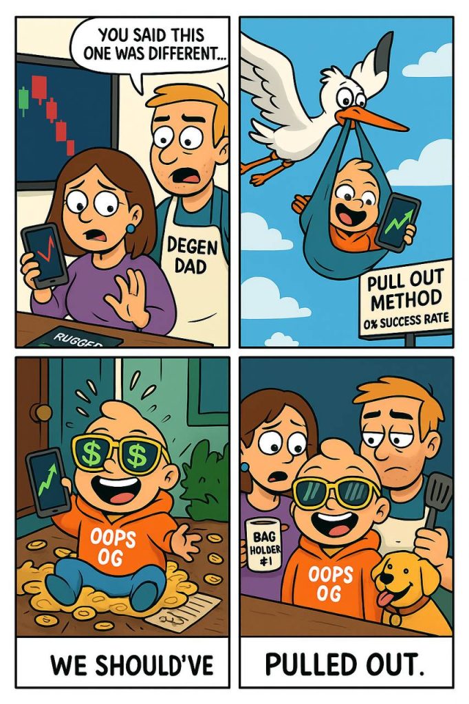 It launched because someone didn’t pull out and it’s mooning because we leaned all the way in. From broken condoms to broken charts, $ celebrates the chaos of creation in true degenerate fashion.